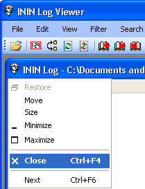 - If multiple log files are open, click on the file you want to close, to give it focus.