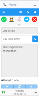 Click the phone icon when ready to place the call. Use the buttons below the callback form to retry the call or to indicate whether or not the call was successful