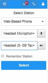 Note: Your selections are saved from the last time you used the Web-Based Phone as your station.