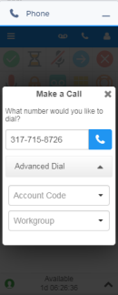 Advanced dialing enables you to assign an account code and designate a workgroup for outgoing calls. Primarily used for administrative and reporting purposes, this feature enables the call to count toward an agent’s and the workgroup’s statistics.