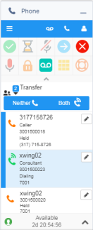 Warning: Perform a consult transfer only when you need to speak with both parties before completing the transfer. If this is not necessary, perform a blind transfer. Do not use a consult transfer to transfer a call to an Attendant profile, workgroup queue, or to an agent's voicemail. These are not supported features and may result in the original call being sent to the default attendant profile.