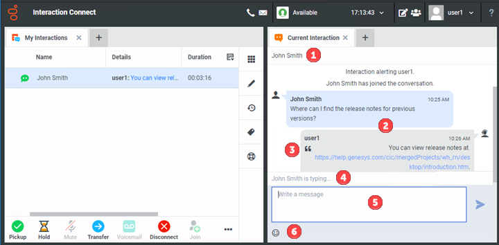 Tip: You can display the Current Interaction view in a side by side arrangement with My Interactions. The currently selected interaction appears in this view.