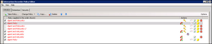Use the Interaction Recorder Policy Editor Initiation page to create a New Policy to configure which interactions to record.