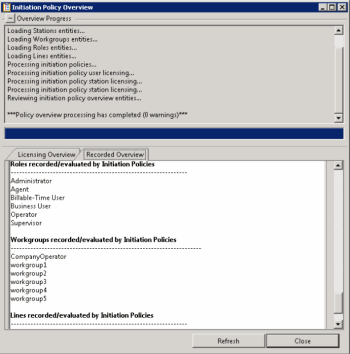 After you have created your Initiation Policies, clicking Overview displays the Initiation Policy Overview dialog.