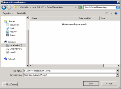 On the Export Recording As dialog, select the folder to export the recording to. You can also rename the file in the File name field.