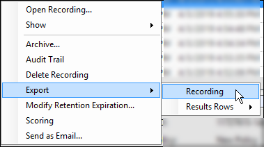 You can Export a single recording, export multiple recordings or export Results Rows. The following information is for exporting a single recording.