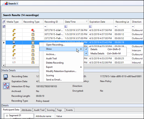 Use the Show command on the shortcut menu to display the Details pane and Media Details pane in the Workspace, or hide the panes.