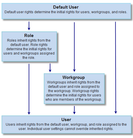 • If you create workgroups, users who are members of a workgroup also inherit rights from that workgroup.