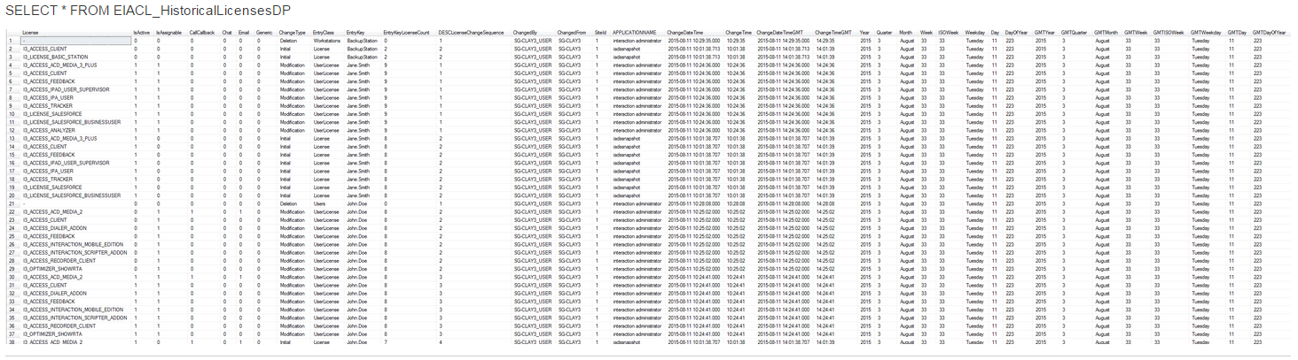This view shows all the changes for licenses. It also includes some date part columns for use in sorting and grouping the data.