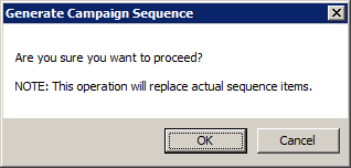 As the Generate Campaign Sequence command adds each campaign group to the campaign sequence, it configures the campaign sequence item with default settings: