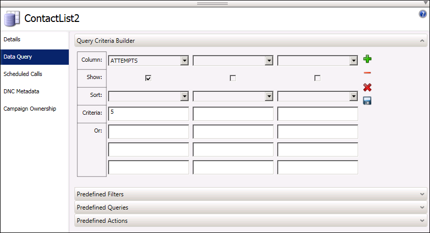 You'll use the controls in the Query Criteria Builder section to build a custom query of the contact records.