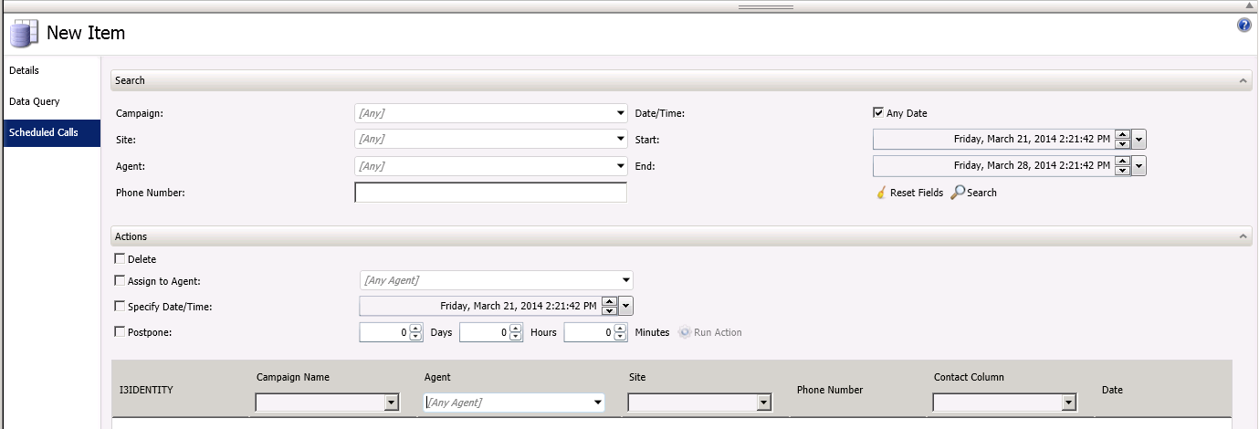 Options on the Scheduled Calls tab manage scheduled callbacks for an agent who is unavailable (sick, on vacation, left the company, and so on). Agents who are sick, on vacation, or who have left the company are unavailable to process callbacks. When this happens, administrators can use the Scheduled Calls tab to: