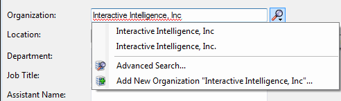 - In the Organization text box, type all or part of the Organization’s name and press Enter or click the Search control next to this text box.