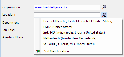 Tip: Display the entire list of Locations for this Organization by pressing Enter or clicking the Search control before typing anything in the Location text box.