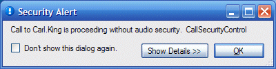 Tip: For more information about why the call is no longer secure, click Show Details >>.
