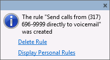 Note: You can also use Personal Rules to set up call rules at any time. For more information, see Setting Up Personal Rules.