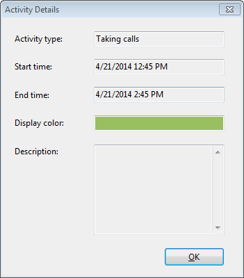 Note: Dismissing a reminder affects reminder behavior only for this occurrence of the scheduled activity. If you dismiss one ACD activity reminder, reminders will still appear for future ACD activities.