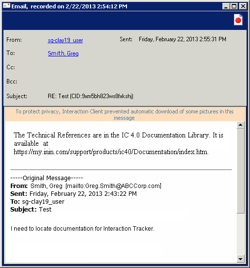 Note: Snippet recordings of email interactions are available only if your CIC administrator separately enables this feature. Snippet recordings of email interactions are not available by default.