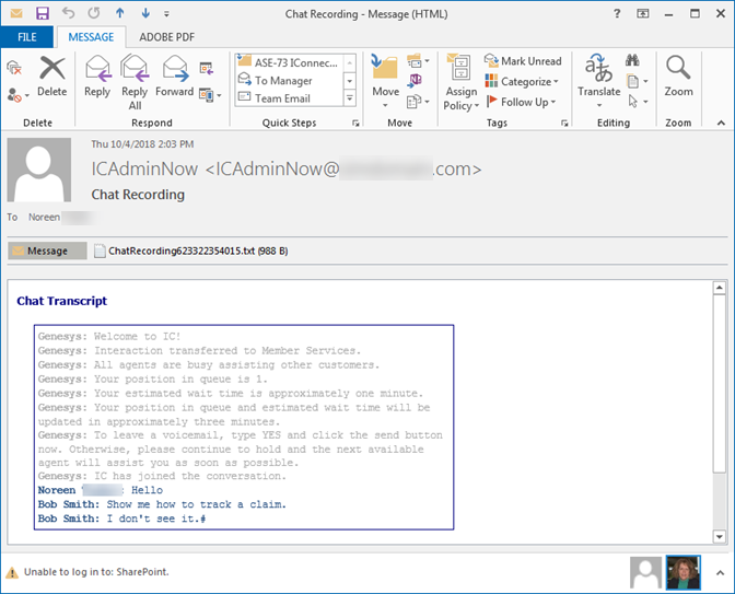 Example of an ad-hoc recording sent to an agent