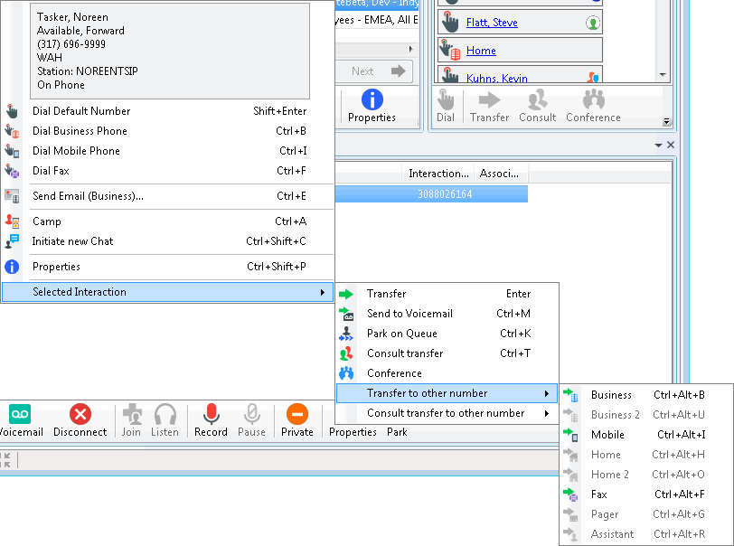 You can view shortcut keys by right-clicking on an interaction or a directory entry.