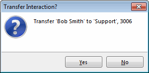 Drag the call to a workgroup in the Workgroups and Profiles directory view. In the Transfer Interaction dialog box, click Yes.