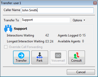 Result: The call disappears from My Interactions and is transferred to the appropriate Workgroup queue.
