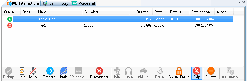 You can view the currently available queue control shortcuts by right-clicking on an interaction in My Interactions or other queue tab. This displays the shortcut menu for the current interaction. Actions that are not available for the current interaction are grayed-out.