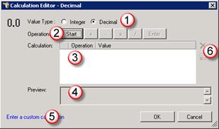 Use the Calculation Editor – Decimal dialog box to create calculations that use a decimal value.