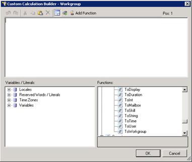 Use the Calculation Editor – Workgroup dialog box to create calculations that use workgroup queue values.
