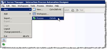 Note: If you have not previously created any processes, you might need to create a view in the IPA Designer workspace before creating your first process.