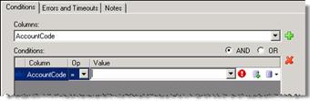 On the Conditions tab, select a column in the Columns list box (see figure):