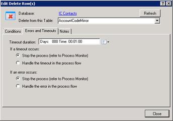 In the Timeout Duration text box, enter the amount of time that the process should try to do the database action before giving up.