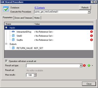If the procedure should return a result set, then at the bottom of the Parameters tab (see figure):