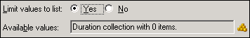 Click the Yes radio button after the label Limit values to list. IPA Designer displays an Available Values text box (see figure).