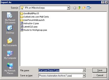 IPA Designer saves the exported process as a .PAA file in the folder.