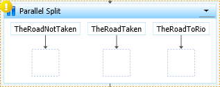The workspace now shows the Parallel Split action (see figure). The exclamation mark icon at the top left shows that one or more of the paths do not have actions.