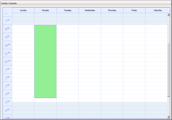 Click OK. The new time slot appears as a green shaded region in the calendar.