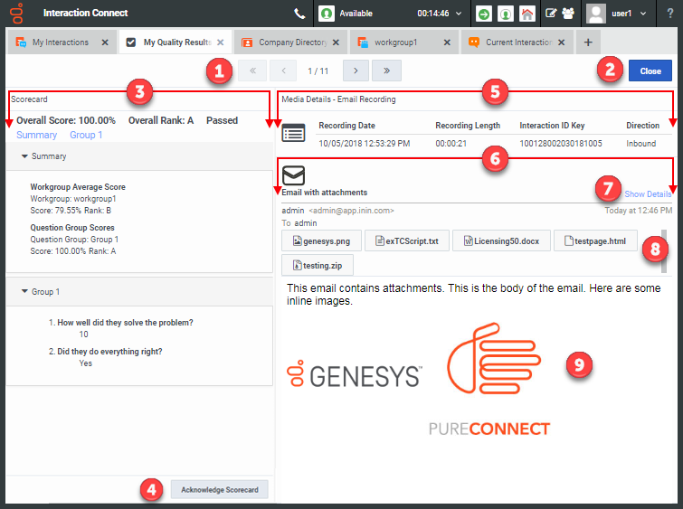 Use this section to review the scores for this interaction. See Scorecard for a description of the information available here. |