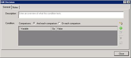 IPA Designer displays an edit dialog box for that action (see figure). The figure shows a Decision action, but the dialogs for other decision-making actions are similar.