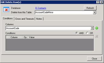 Use the Edit Delete Rows dialog to delete selected rows in a database table.