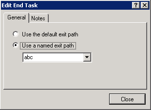 If you want the End Task action to return a value to your process, such as Success or Error 5332, select the radio button labeled Use a named exit path, then type or select the desired path. The result value is the same as the path name.