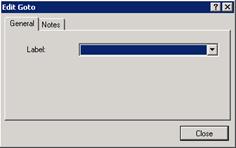 The Goto action lets you make the process jump to any other point in your process design. Before you can add a Goto action, however, you must first add a Label action to mark the point where the process should jump. Goto and Label actions work together: a goto won't work without a label, and a label doesn't make any sense without a goto.