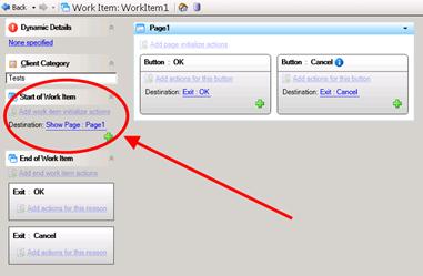 • Specify actions that run at the start of the work item before any pages are displayed.