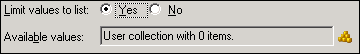 Click the Yes radio button after the label Limit values to list. IPA Designer displays an Available Values text box (see figure).