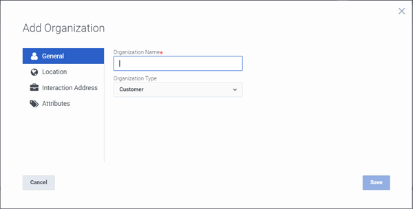 Result: The Add Organization dialog box appears.