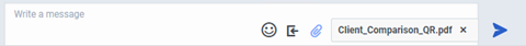 To send a file, click the Attach a file icon (paperclip), select a file. The selected file name appears. Click the Send icon.