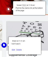 To display text directly on the visitor's webpage, click the Annotation icon. You can position the annotation anywhere on the webpage. The visitor has a similar control and can ask questions or respond. You and the visitor see all annotations made on this webpage.