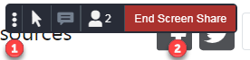 During a Co-browse session, the website visitor sees a webpage toolbar that is similar to the controls available your Co-browse view. The visitor has the same Pointer, Annotation, Participants, and End Co-browse controls.