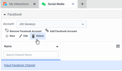 Tip: You can edit or delete the Facebook channel by selecting its label and clicking the appropriate button in the Social Media view.