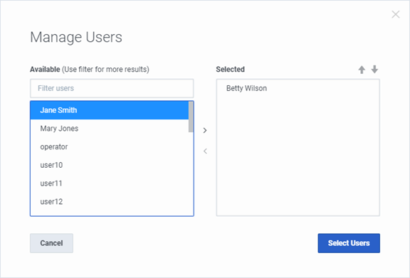 When the Selected list contains the names of the user queues you want to monitor, click Select Users.